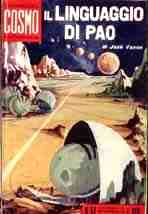 Il linguaggio di Pao (The Language[s] of Pao, [1957]), Jack VANCE cop. [Luigi Garonzi], tr. Gianni Samaja I Romanzi del Cosmo 41 Ponzoni Editore, Milano [00503] (EV) Br, dim. [hxl]: 182x122, Batt.xrighe: 60x46, pagg.: 144, Lit. 150 [N] -15 dic 1959 *p. 3 Il linguaggio di Pao // Jack VANCE tr. Gianni Samaja, ill. [Gianni Renna] *p. 118 Suggeritemi un rimedio // P. D. FOUR p. 129 Rivolta 2100 // Robert A. HEINLEIN tr. non indicato 6ª punt. p. 140 Le avventure della scienza p. 143 La posta del Cosmo