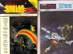 cop. [Rudolf Sieber-Lonati] Verso le Stelle 9 Solaris Editrice, Milano [02581] (EV) Br, dim. [hxl]: 195x132, Batt.xrighe: 70x46, pagg.: 128, Lit. 1.200 [A 9] -giu 1979 [ricart. con il 10 come: I Libri di Solaris 14] p. 1 Presentazione p. 2 SOMMARIO p. 3 Informativa. La fantascienza tedesca // Mariangela SALA ill. ripr. *p. 9 Conversazione con un computer // Erich VON DAENIKEN tr. Mariangela Sala p. 13 Intervista con Livio Horrack p. 16 Panorama editoriale p. 17 Candidato alla morte // Walter ERNSTING - [con Robert ARTNER] tr. Mariangela Sala, ill. Leo Mansueto p. 29 La poesia del futuribile p. 32 Punto d'incontro *p. 35 Un cyborg di nome Joe // Herbert W. FRANKE tr. Mariangela Sala, ill. non indicato p. 39 Selezione di film di fantascienza ill. foto dal film *p. 43 Il giorno della vendetta // Ronald M. HAHN tr. Mariangela Sala, ill. non indicato p. 49 VlS Eco Stampa p. 50 MICROPOSTA e Inserzioni *p. 52 Sulla bolla di sapone // Kurd LASSWITZ tr. Mariangela Sala p. 59 Scrivendo a proposito di fantascienza nostrana // Fulvio ROGOLINO ill. non indicato *p. 62 Sovrappopolazione // William VOLTZ tr. Mariangela Sala, ill. non indicato p. 73 Ancora su J. Wyndham // Claudio ASCIUTI ill. non indicato *p. 75 Safari fra le stelle // Ernst VLCEK tr. Mariangela Sala p. 91 Informativa. Gli UFO nei paesi dell'Est // Maurizio VERGA ill. non indicato *p. 95 Bustrophedon // Alberto NIGI p. 112 Lo specchio ill. Ruga p. 113 Profilo di Philip Kindred Dick // Michele MARTINO ill. Giorgio Ferrari p. 118 Images ill. Alessandro Bani *p. 119 Europa unita // Mario SUMIRASCHI - come Mara SUZIATI [ps] p. 124 [Alien] ill. Giorgio Ferrari p. 127 Indice di gradimento