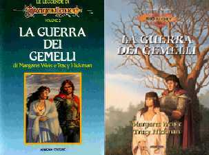 La guerra dei gemelli (War of the Twins, 1986, 1989), Margaret WEIS, Tracy HICKMAN cop. Larry Elmore, tr. Giampaolo Cossato e Sandro Sandrelli Le Leggende di Dragonlance 2º Armenia Editore, Milano [05238] (EV) Br, dim. [hxl]: 194x128, Batt.xrighe: 65x42, pagg.: 412(4), Lit. 20.000 [N] ISBN 88-344-0389-4 (978-88-344-0389-1) -lug 1989 p. 4 [dedica] p. 6 Il mondo di Krynn *p. 9 La guerra dei gemelli // Margaret WEIS - con Tracy HICKMAN tr. Giampaolo Cossato e Sandro Sandrelli, ill. Valerie Valusek p. 409 Ringraziamenti