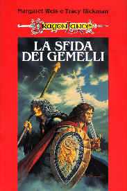 La sfida dei gemelli (Test of the Twins, 1986 e 1989), Margaret WEIS, Tracy HICKMAN cop. Larry Elmore, tr. Giampaolo Cossato e Sandro Sandrelli Euroclub, Milano [EB505] (EB) Ri/Sc, dim. [hxl]: 235x156, Batt.xrighe: 60x45, pagg.: (2)322(2), senza ind. di prezzo [N] -mar 1992 p. 4 [dedica] p. 7 La sfida dei gemelli // Margaret WEIS - con Tracy HICKMAN tr. Giampaolo Cossato e Sandro Sandrelli p. 318 Ringraziamenti p. 319 Postfazione // Margaret WEIS - con Tracy HICKMAN tr. Giampaolo Cossato e Sandro Sandrelli p. 324 Il mondo di Krynn
