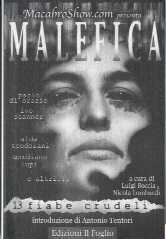 Malefica 13 fiabe crudeli, Luigi BOCCIA, Nicola LOMBARDI (a cura di) cop. Paolo Di Orazio Il Cerchio della Paura [3] Edizioni Il Foglio, Piombino [12616] (EV) Br, dim. [hxl]: 202x140, Batt.xrighe: 70x38, pagg.: 3-100(2), Eu. 8,00 [A 13] ISBN 88-88515-36-4 (978-88-88515-36-6) -ott 2003 [sul colophon: giu. 2003; regalo di Lupi] p. 7 INDICE p. 9 La paura delle fiabe // Antonio TENTORI *p. 15 Fiabe della buonanotte // Nicola LOMBARDI *p. 19 Gerania // Fabio GIOVANNINI - come Ivo SCANNER [ps] *p. 27 I guanti neri // Luigi BOCCIA *p. 33 La Bestia e il Cacciatore // Guido ALFANI *p. 43 Il cuore del capitano // Alda TEODORANI *p. 47 La danza della sconfitta // Riccardo COLTRI *p. 59 Cappuccetto rosso // Gordiano LUPI *p. 65 La storia dell'Abate Goglia // Alessandra FERNANDEZ *p. 69 Gretel e Hänsel // Filippo MEZZETTI *p. 73 Laura // Simonetta SANTAMARIA *p. 79 Cerimonia // Roberta MOCHI *p. 83 Io sono il bosco // Alberto CORRADI *p. 91 L'uomo che divorava l'isteria // Paolo DI ORAZIO