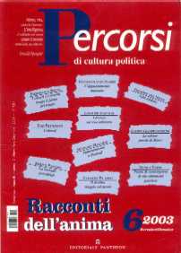 Racconti dell'anima cop. non illustrato Percorsi di Cultura Politica a.II, n. 6 Editoriale Pantheon, Roma [12703] (EV) Br, dim. [hxl]: 240x170, Batt.xrighe: 75x39, pagg.: 3-106, Eu. 7,50 [A 10; 3 fant.] ISSN 1594-4557 -nov/dic 2003 [regalo di Passaro; in copertina, di traverso è indicato: anno II, n. IV] p. 5 SOMMARIO p. 8 Le vite parallele p. 10 <omissis> p. 27 L'appuntamento mancato // Gianfranco DE TURRIS p. 32 <omissis> *p. 38 Lorenzo nel suo labirinto // Luigi DE PASCALIS p. 52 <omissis> *p. 56 Le ultime parole di Moro // Fausto GIANFRANCESCHI p. 60 <omissis>