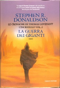 Le Cronache di Thomas Covenant l'Incredulo vol. 2. La guerra dei Giganti (The Illearth War, 1977), Stephen R. DONALDSON cop. Daniele Colaiacomo, tr. Raffaella De Dominicis Collezione Immaginario. Fantasy [30] Fanucci Editore, Roma [14268] (EV) Ri/Sc, dim. [hxl]: 247x170, Batt.xrighe: 70x40, pagg.: (2)518(12), Eu. 18,50 [N] ISBN 88-347-1222-6 (978-88-347-1222-1) -ott 2006 p. 4 [cartina] p. 9 [dedica] p. 11 Antefatto // Stephen R. DONALDSON tr. Raffaella De Dominicis p. 17 La guerra dei Giganti // Stephen R. DONALDSON p. 509 Glossario
